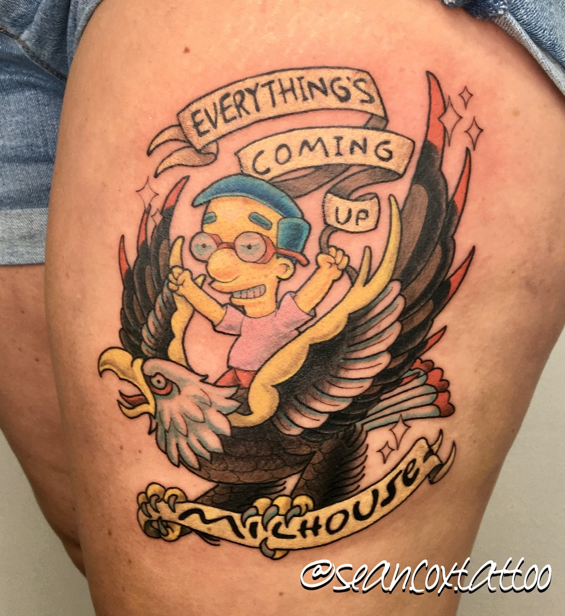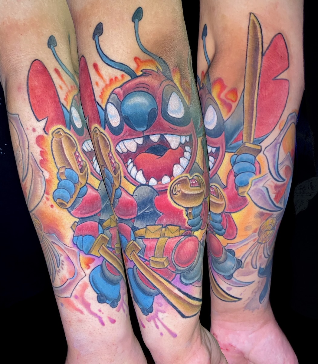 The simplicity required of cartoon images are what makes them translate so well into timeless tattoos. If something had to be drawn over and over and over, you better believe those artists boiled down those character designs to their basic essence. Strong silhouettes keep them recognizable from across the street. Plus, colour keeps similar elements organized for an easily readable image. Moreover, these designs fire up the nostalgia circuit fast. They take us back to a time when things were a hell of a lot simpler. Every piece feels loud, fun, and unmistakably rooted in our upbringings.